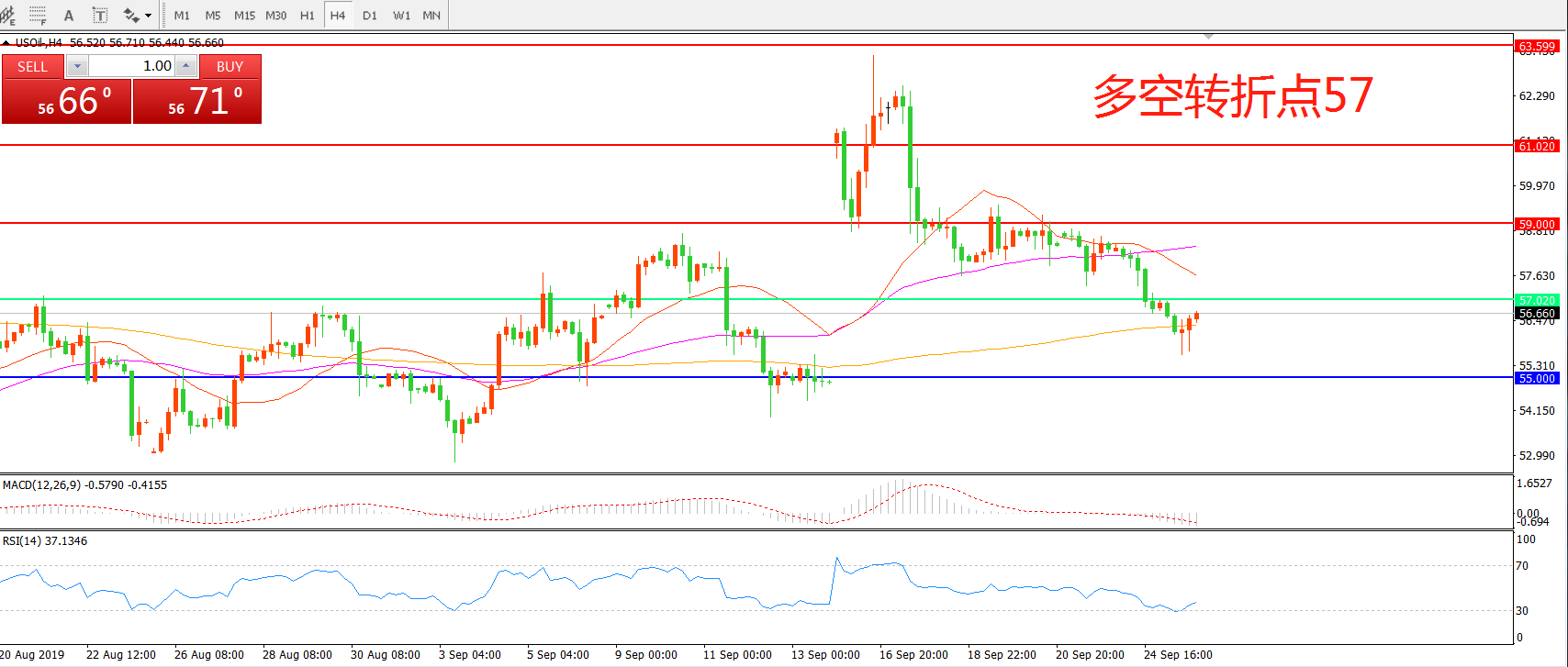 交易策略: 在57.00之下看跌,目标55.00   52.50
