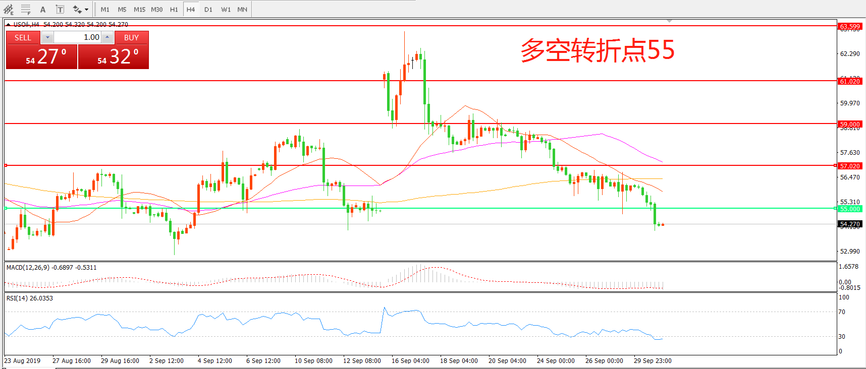 交易策略: 在55.00之下看跌,目标52.50 50.50