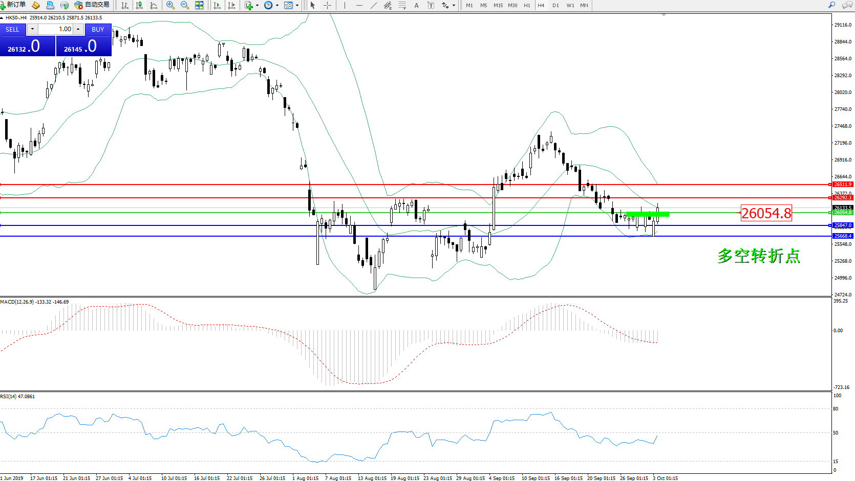 恒指HK50 ——4小时K线图显示: