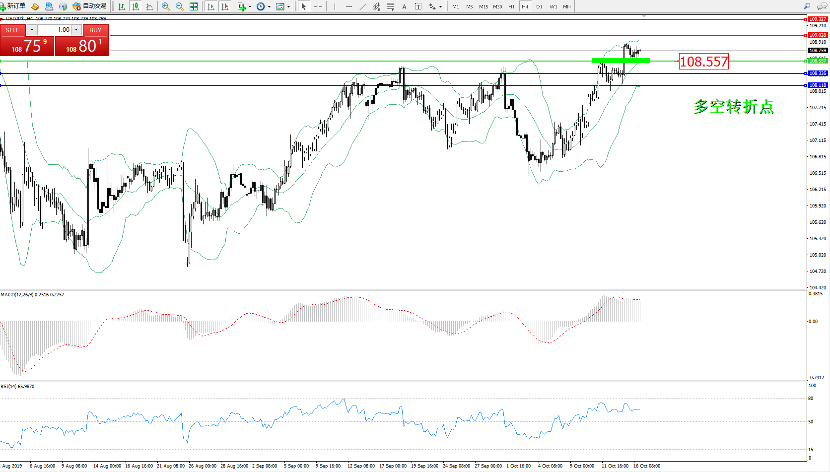 交易策略:108.557上方看涨,目标109.028109.327
