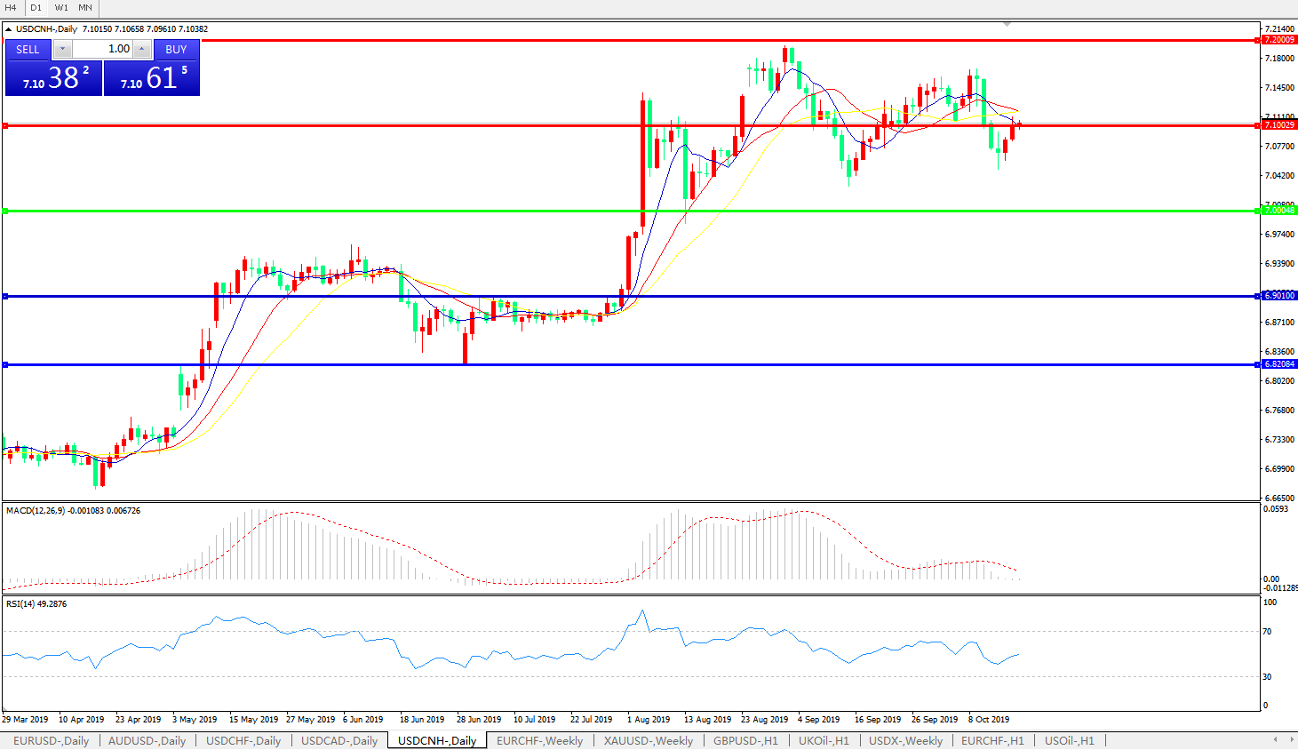 美元兑人民币USDCNH    日线图: