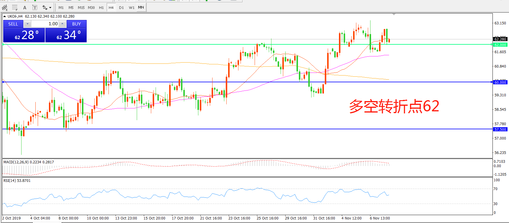 多空转折点:62.00