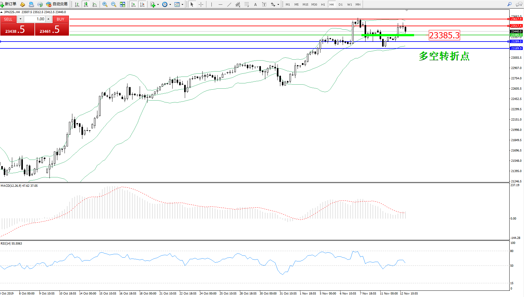 日经指数JPN225——4小时K线图: