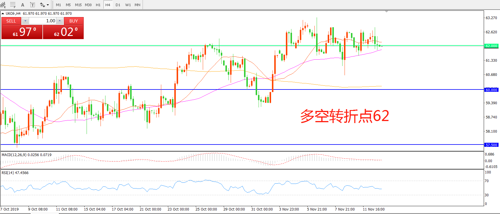 多空转折点:62.00