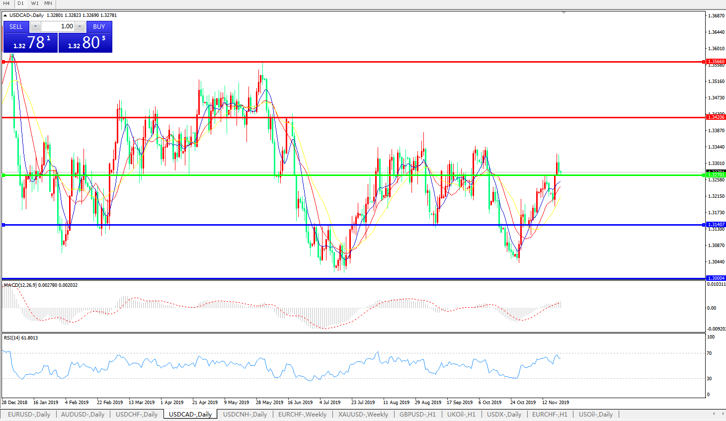 美元指数涨0.08%至97.98, 最近几周,投资者对达成协议的可能性越来越乐观,但最近几天,双方的贸易言论都趋于强硬,令投资者感到不安。OANDA驻多伦多的资深外汇分析师Alfonso Esparza表示,这些消息的影响相互抵消,实际上对市场不利,目前,美元非常依赖贸易消息。美元兑加元下跌0.14%至1.3285一线,盘中低点1.3270;该货币对维持在200日移动均线1.3277上方,并保持在周三的交易区间内。加拿大央行行长Poloz表示货币政策状况大体合适,并且具有相当刺激性,这降低了该国进行预防性降息的可能性。加元也追随油价走高;WTI原油上涨超过2%,创九周新高。一位加拿大策略师表示,Poloz的言论引发了对加元的空头回补;加拿大央行12月份降息的概率从周三的23%降至约9%。