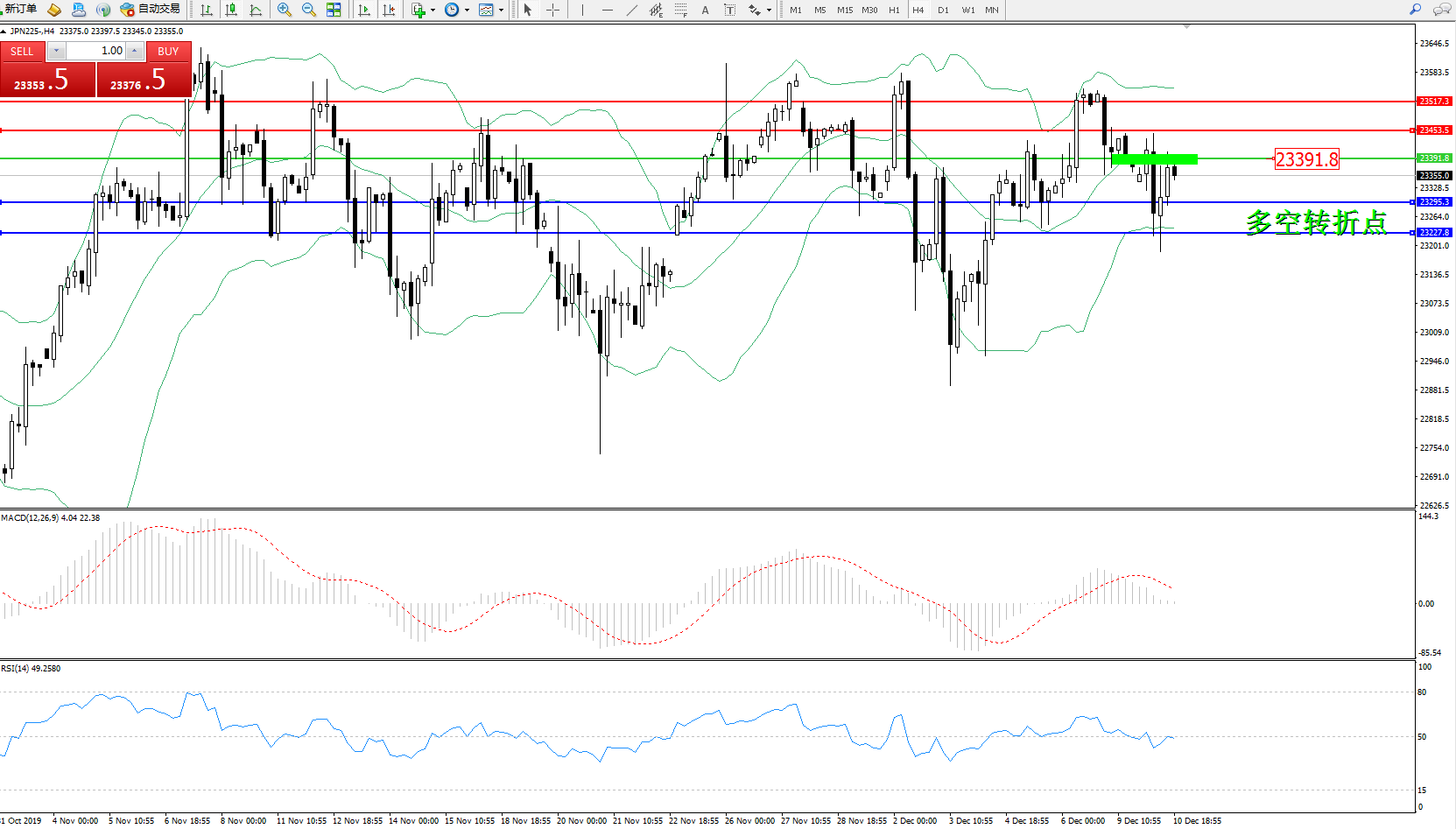 日经指数JPN225——4小时K线图: