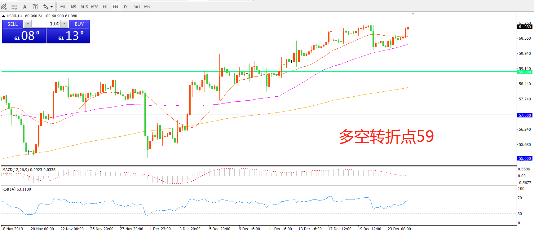 交易策略:在59.00 之上看涨,目标62.00       65.00