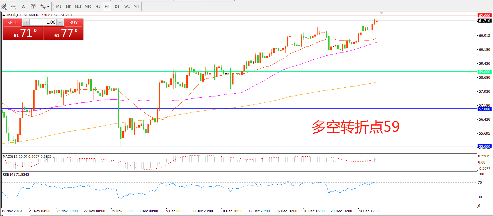 交易策略:在59.00 之上看涨,目标62.00       65.00