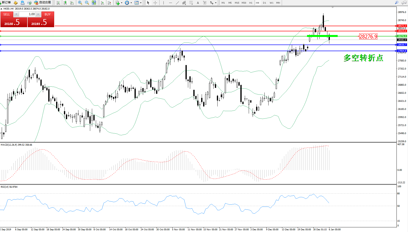 香港恒生指数1月6日(周一)收盘下跌225.31点,跌幅0.79%,报28226.19点;受美伊局势影响,今日港股市场全日呈弱势下跌,一扫前期凌厉上攻之势。A股表现相对强势,走出独立行情。具有避险功能的黄金股、石油股集体强势,军工股、半导体、农业股小幅上涨,原油飙升,美伊冲突升级,伊拉克议会要求美军撤离,特朗普威胁大规模制裁。