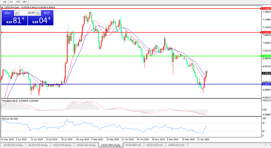 交易策略: 在7.0000之下,看跌,目标价位为6.8820,然后为6.7600。