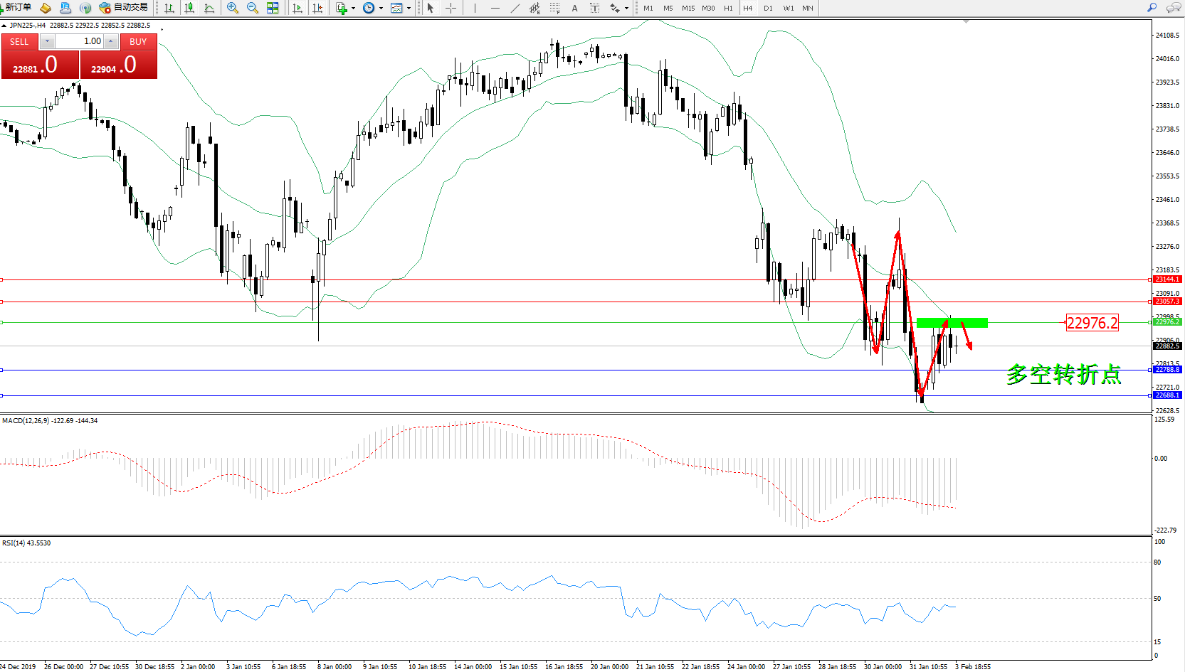 交易策略:22976下方看跌,目标2278822688