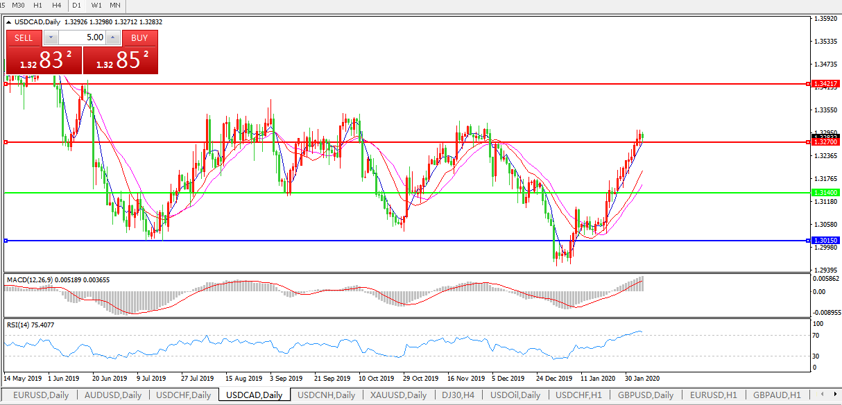 技术面简析:日线图均线呈多头排列,汇价上攻态势保持良好,MACD开始走升且量能0轴上方持续放量,RSI超卖区域小幅走低,预计汇价短期大概率将延续整理上行态势。