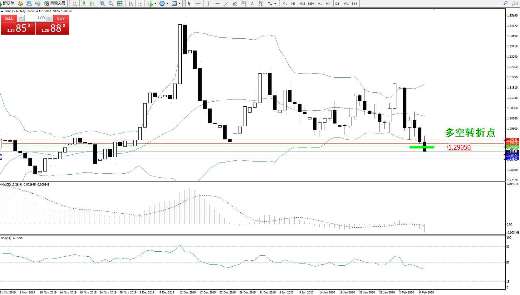交易策略:1.29050下方看跌,目标1.28677、1.28503
