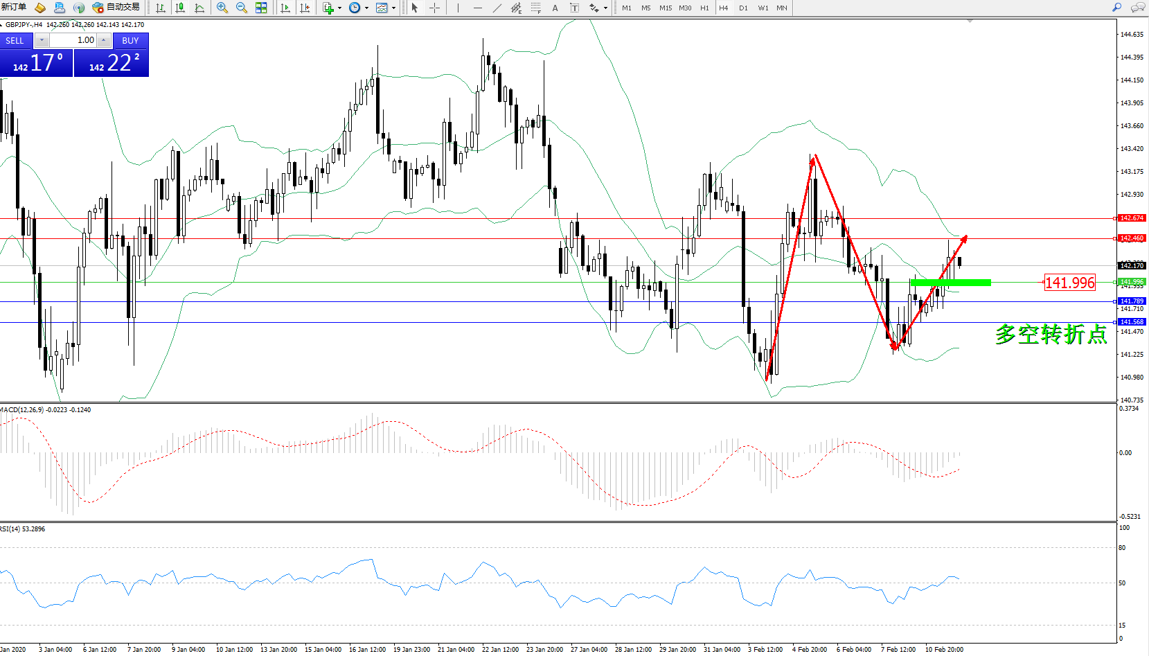 交易策略:141.996上方看涨,目标142.460142.674