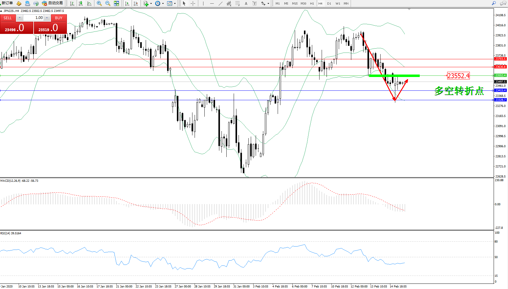 日经指数JPN225——4小时K线图: