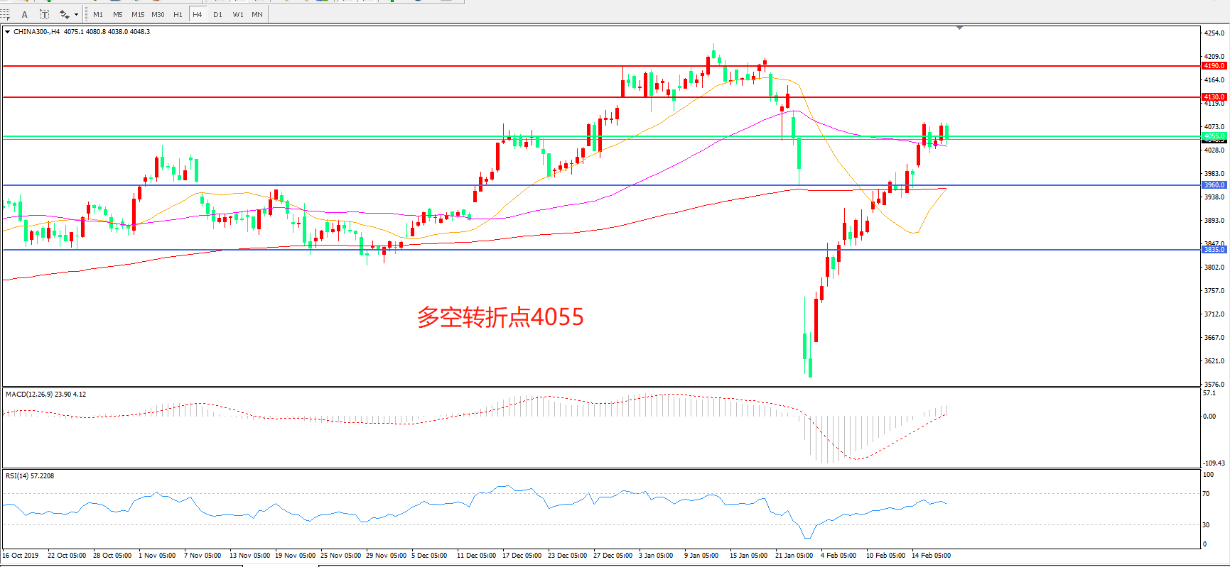 4小时图看,沪深300维持高位震荡,冲高后再度回落,涨势暂缓,55周期均线成为短期支撑,MACD红柱增加,RSI指标走平,近期延续上行概率较大。