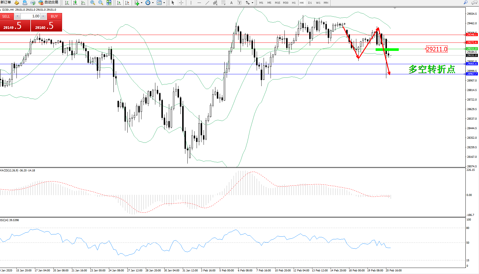 道琼斯指数2月20日(周四)收盘下跌128.00点,跌幅0.44%,报29219.98点。美国股市下跌,市场担心公共卫生事件将对公司业绩造成沉重打击。微软、苹果和其他大型科技股领跌,随着汽车制造商和房地产公司上涨,公司业绩不及预期加剧了市场的悲观情绪,此外,全球最大集装箱运输公司马士基,以及法荷航集团就疫情的影响发出最新警告。美联储会议纪要表明,放松政策的门槛明显低于提高利率的门槛。美联储副主席克拉里达周四对经济前景发表乐观评估,称美国经济没有显示出失去动能的迹象,对于此次疫情可能改变美联储的利率政策,他没有表现出多少警惕。不过,来自公共卫生事件的负面影响不太可能很快消散,中国通过央行调整利率来提振经济的努力,在重振经济活动方面是一个有限的解决方案。