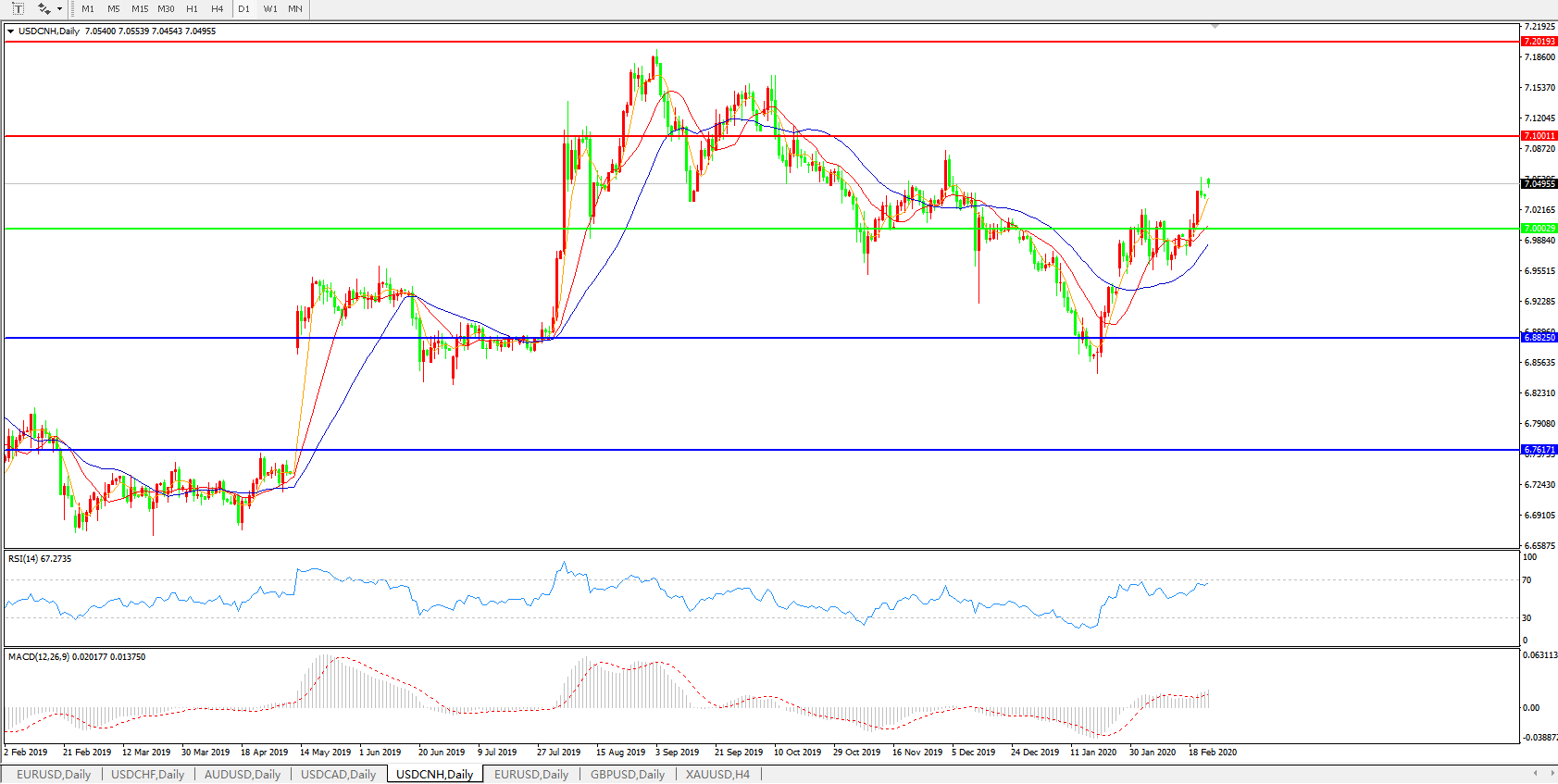 美元兑人民币USDCNH    日线图: