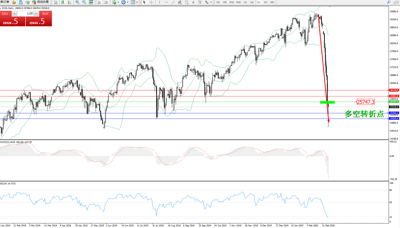 道琼斯指数2月28日(周五)收盘下跌357.50点,跌幅1.39%,报25409.15点。公共卫生事件引发全球金融市场震荡,美股本周表现为金融危机以来最差,,道琼斯数跌至6月以来的最低水平,股市市值蒸发近3万亿美元。资者先抛掉手中股票,然后才开始想问题。我们看到了清仓迹象。不惜一切代价离场似乎成了市场普遍的情绪。毫无疑问,公共卫生事件将继续对全球经济造成压力,美国也无法幸免。损失惨重的多头周五从美联储那里获得了提振,美联储主席鲍威尔表示,美联储正在关注病毒的影响,会在适当时候采取行动,其补充称美国经济基本面依然强劲。美银策略师目前预计,美联储会在3月份会议上减息50基点。白宫经济顾问库德洛建议投资者逢低买进。