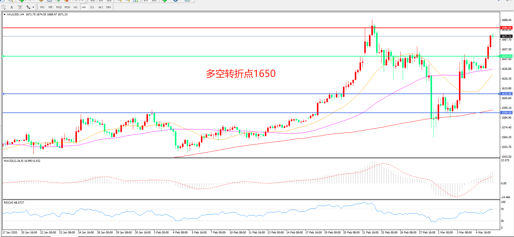 阻力位:1680.00 1700.00
