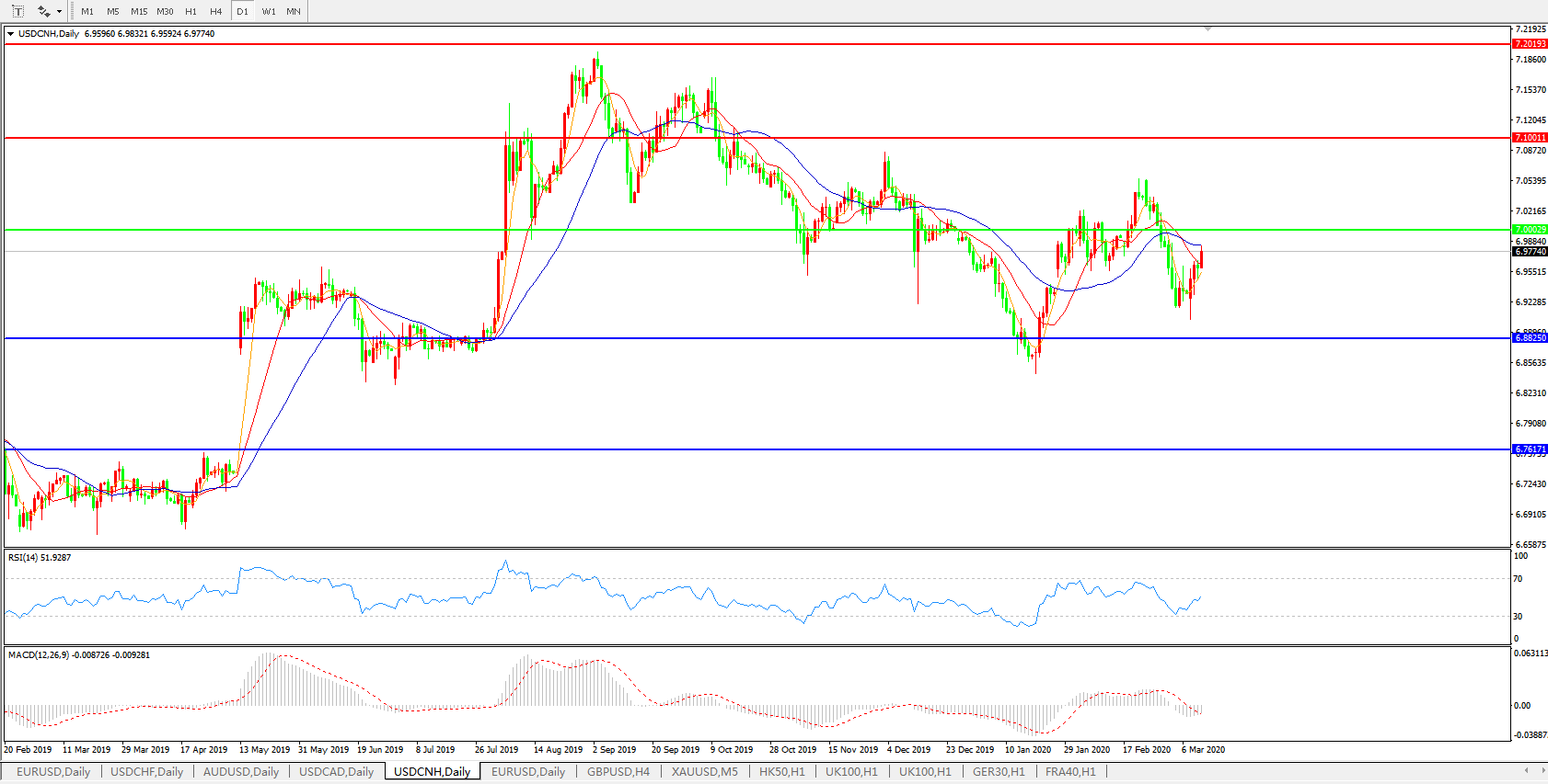 交易策略: 在7.0000之下,看跌,目标价位为6.8820,然后为6.7600。