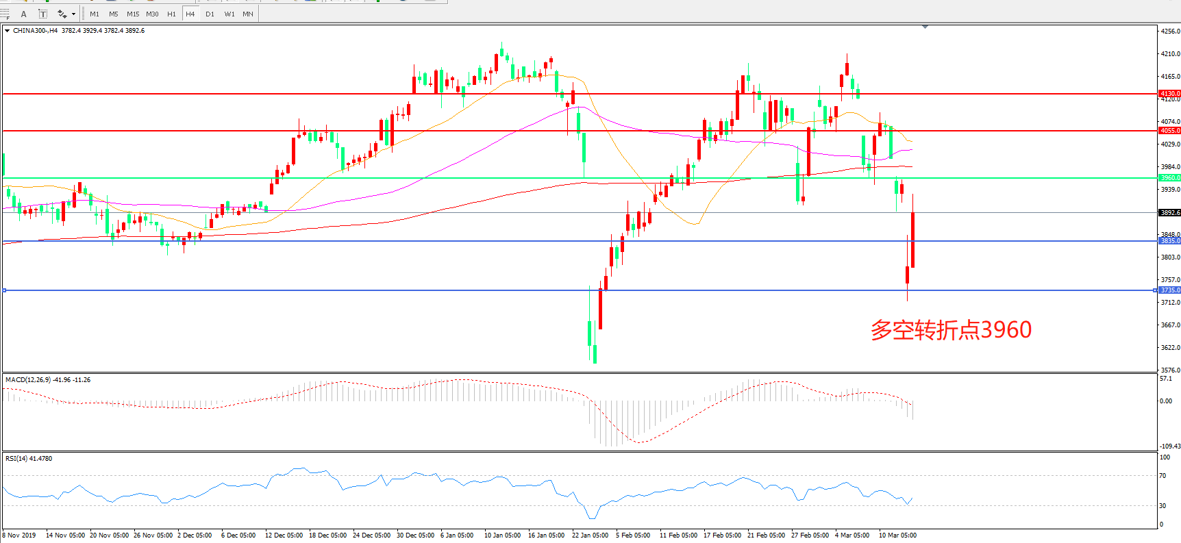 沪深300 CHINA 300 4小时图