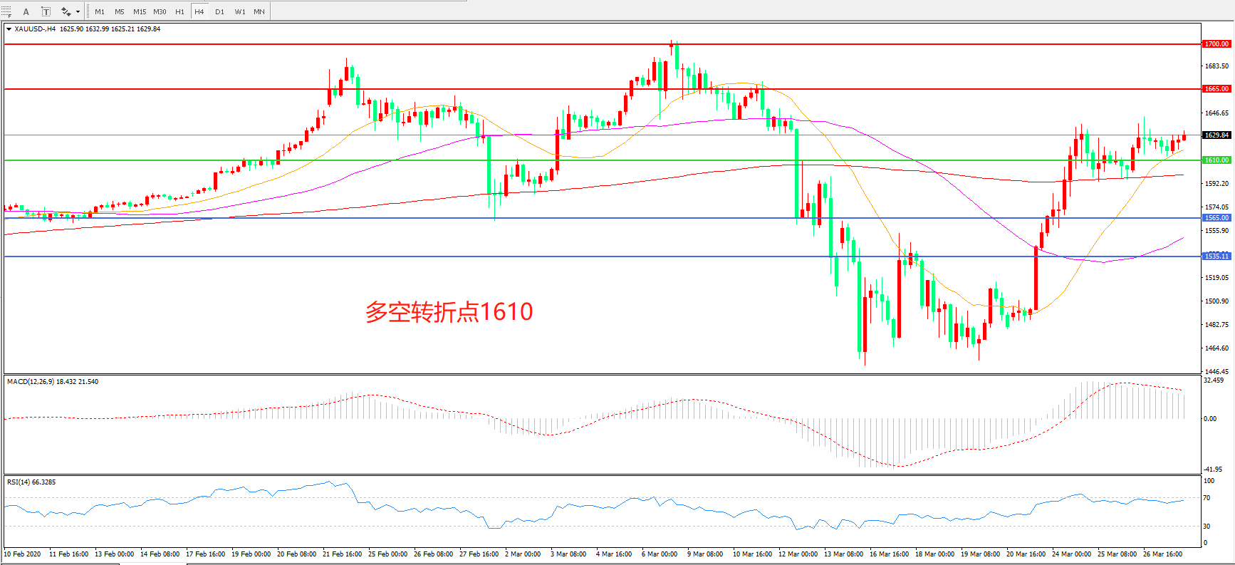 现货黄金XAU/USD    4小时图