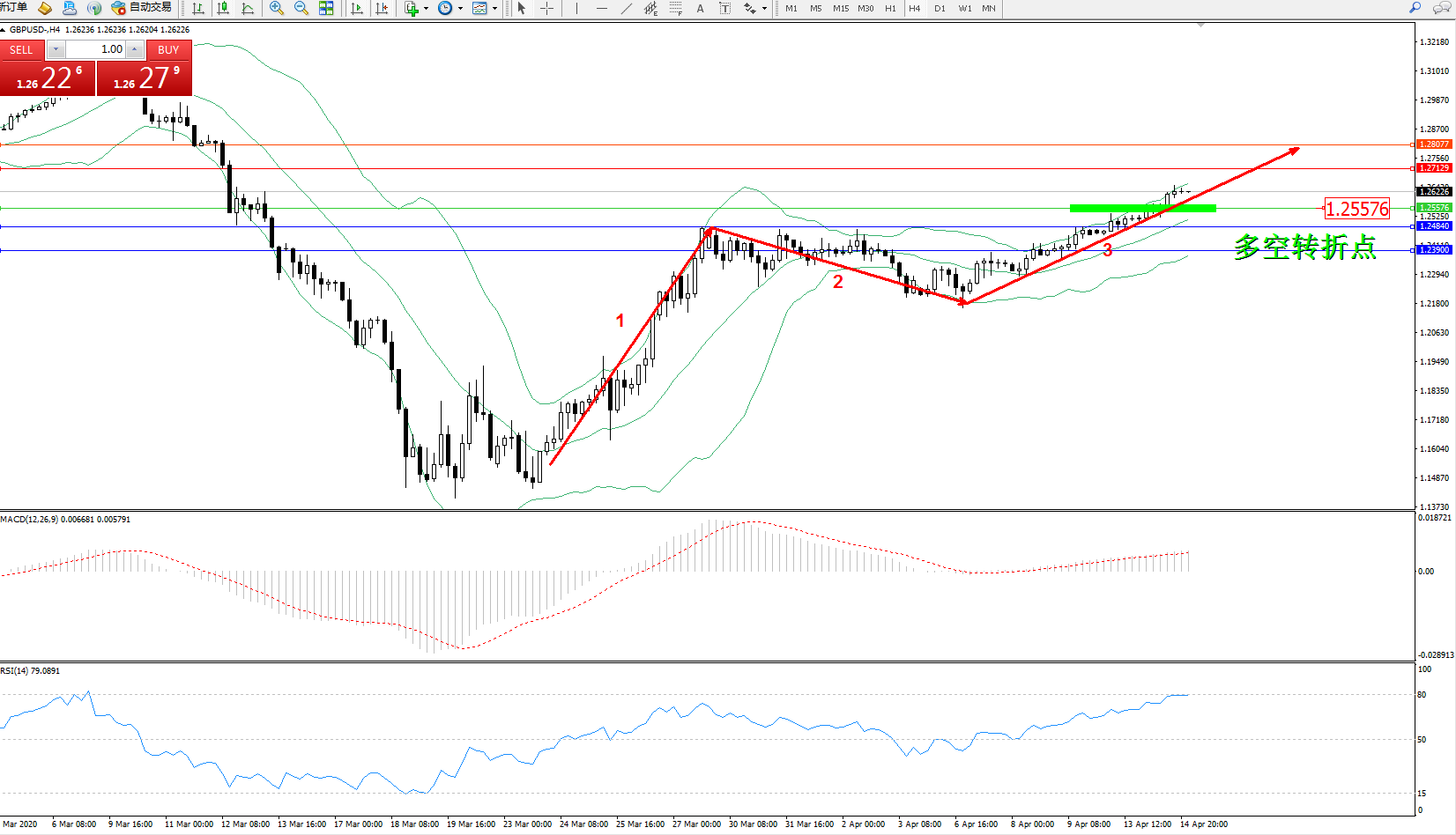 英镑美元GBPUSD ——4小时K线图显示: