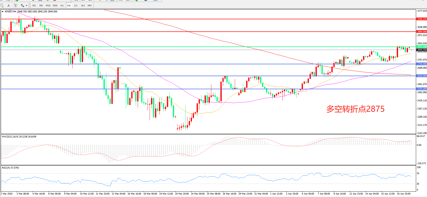 上周五(4月17日),在特朗普重启经济消息的刺激下,美股全线高开,标普500延续高位震荡,最终收报2869点。据美国媒体报道,瑞德西韦在一项针对125例新冠病例的实验性治疗中显示出较好疗效。这一研究进展显著提升投资者风险偏好,推动欧美股市大幅上涨。