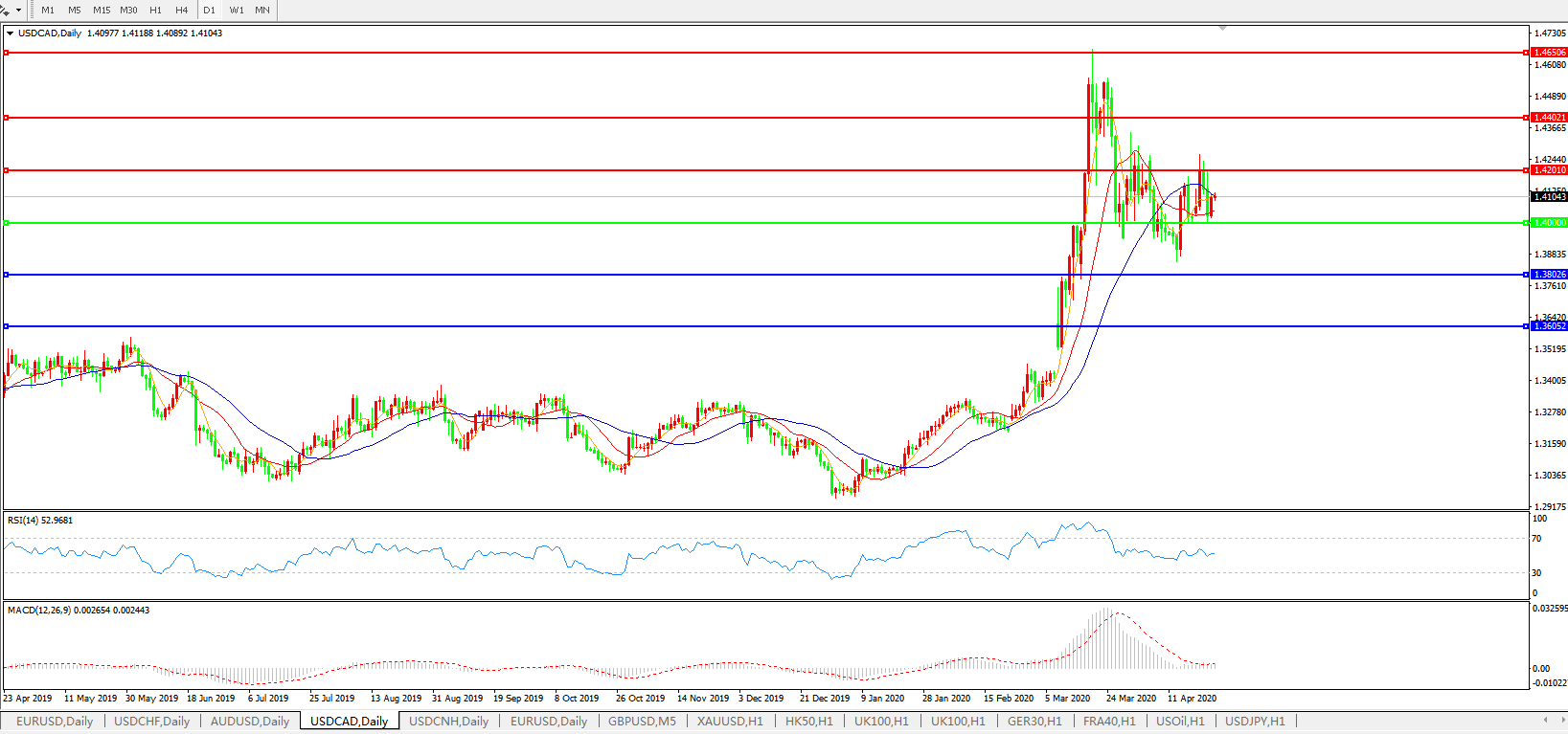 交易策略: 1.4000之上,看涨,目标价位为1.4200、1.4400