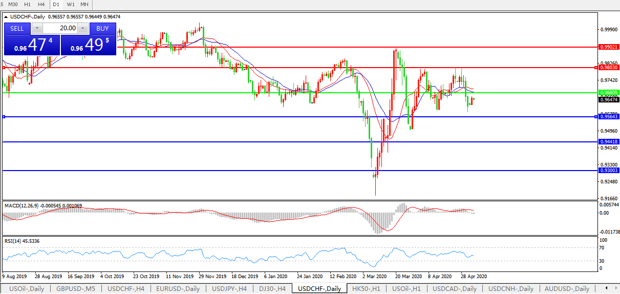 交易策略:0.9680下方看跌,目标0.9565、0.9440
