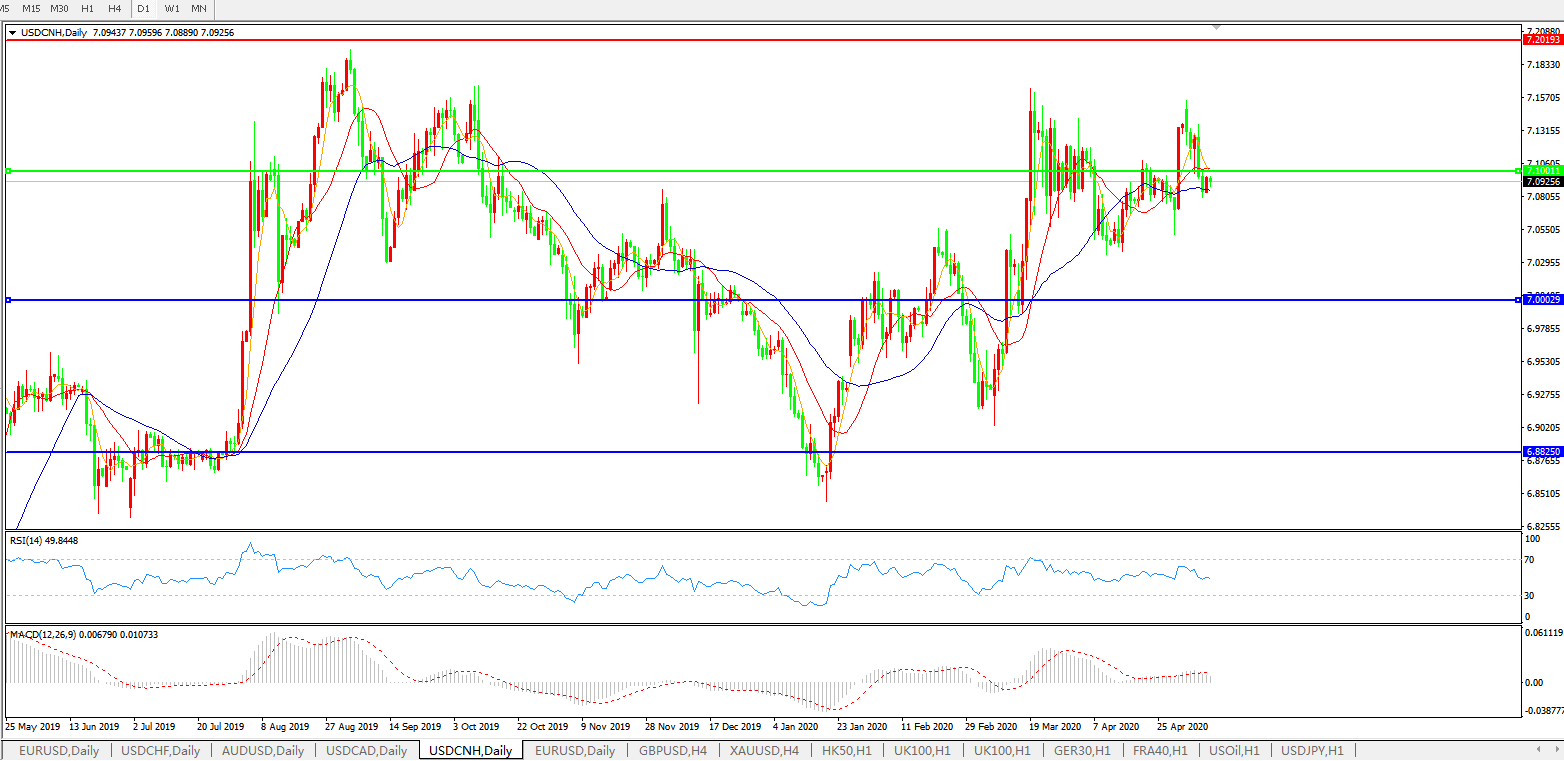 美元兑人民币USDCNH 日线图: