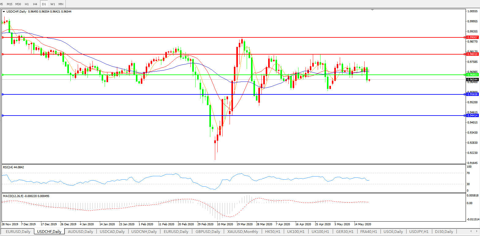 交易策略:0.9680下方看跌,目标0.9565、0.9440