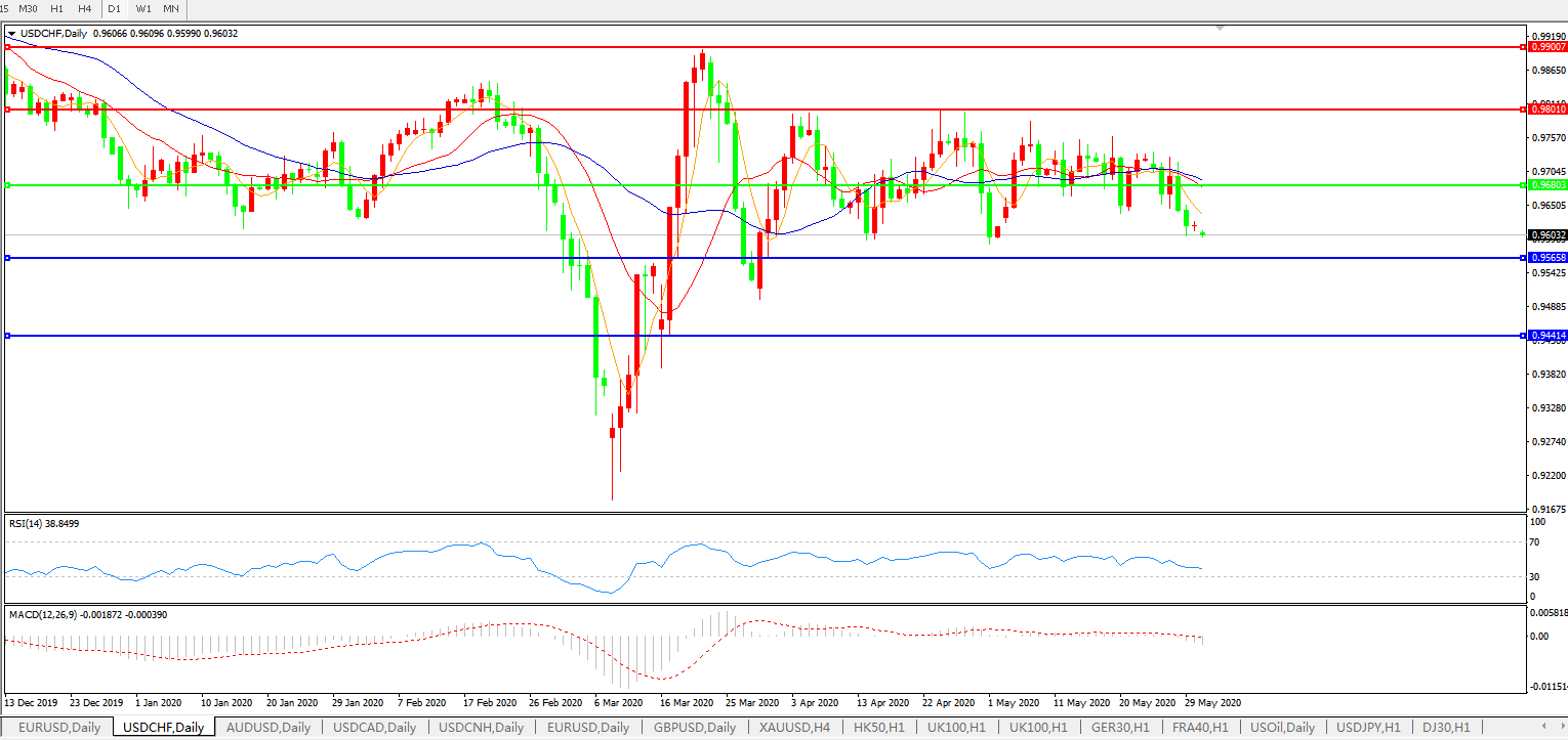 交易策略:0.9680下方看跌,目标0.9565、0.9440