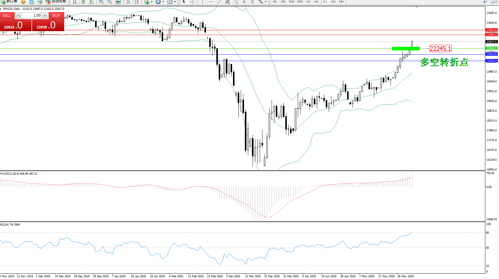 技术点评:多头动力延续布林带指标上轨持续震荡上扬中,强势拉升后未见其止步或减弱迹象,布林带指标呈张口走势态势良好,MACD指标处于0轴线上方持续震荡平缓上扬中,RSI指标处于多头区域持续震荡上行至超买区80均衡线附近徘徊;