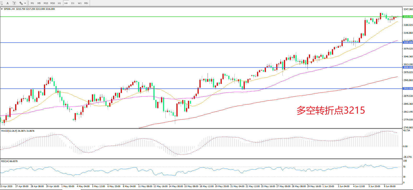 周二(6月9日),因美股大幅反弹后投资者选择获利回吐,标普500一度大跌,但受益于经济重启预期,下行幅度有限,最终收报3215点。美股两极分化依然严重,大型科技股普遍攀升,其中亚马逊与苹果均创历史新高,但小盘股表现萎靡。