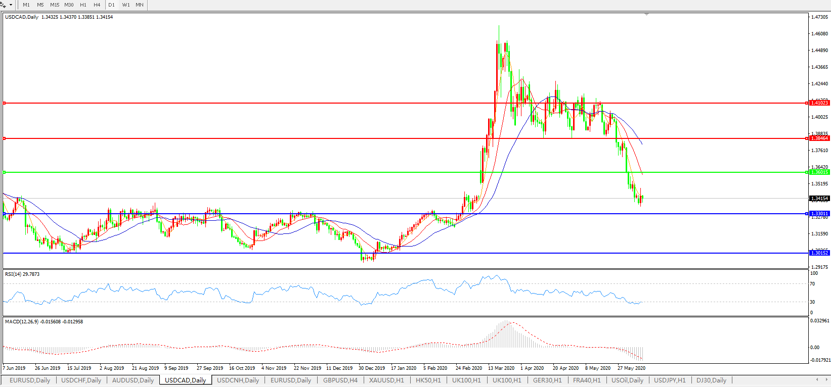 美元兑加元USDCAD 日线图: