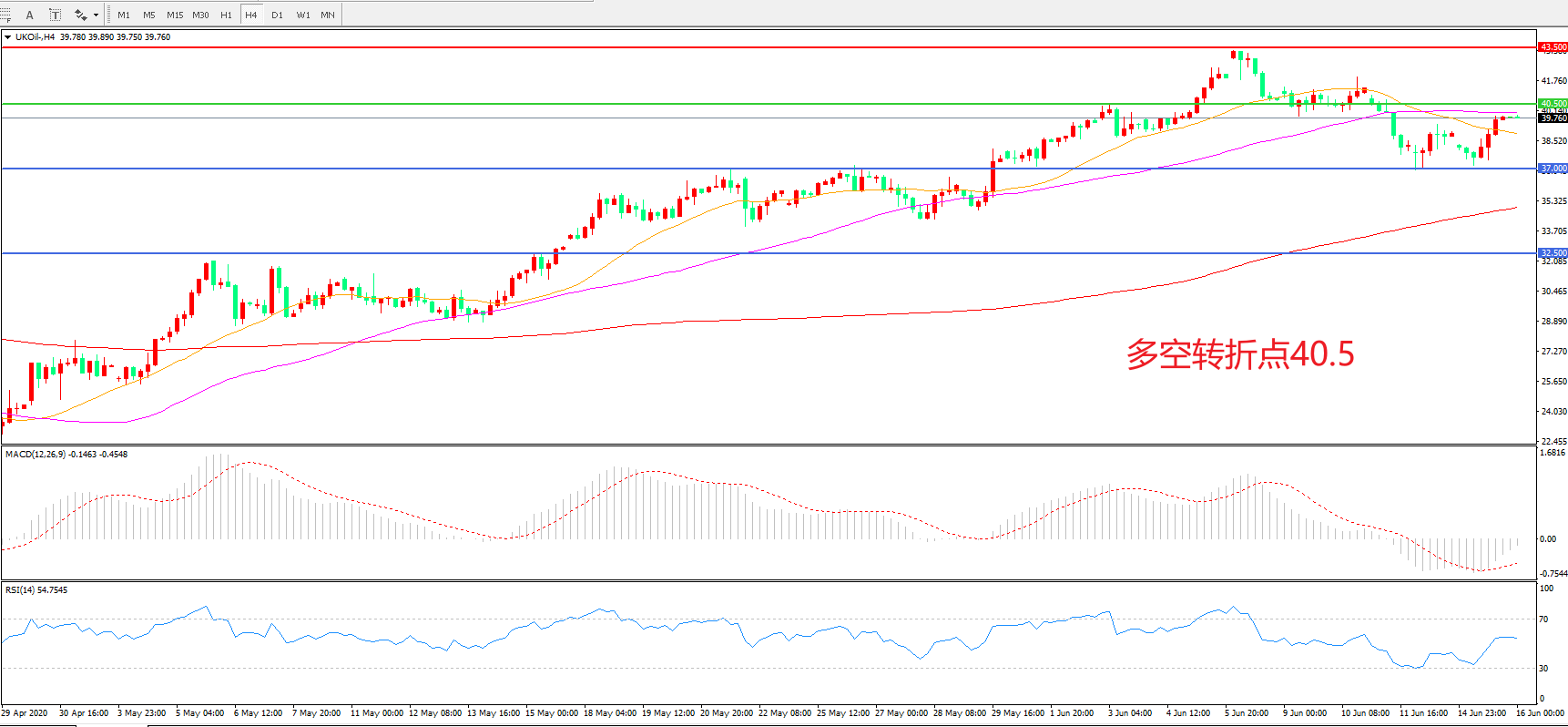 交易策略:  在40.50之下看跌,目标37.00      32.50