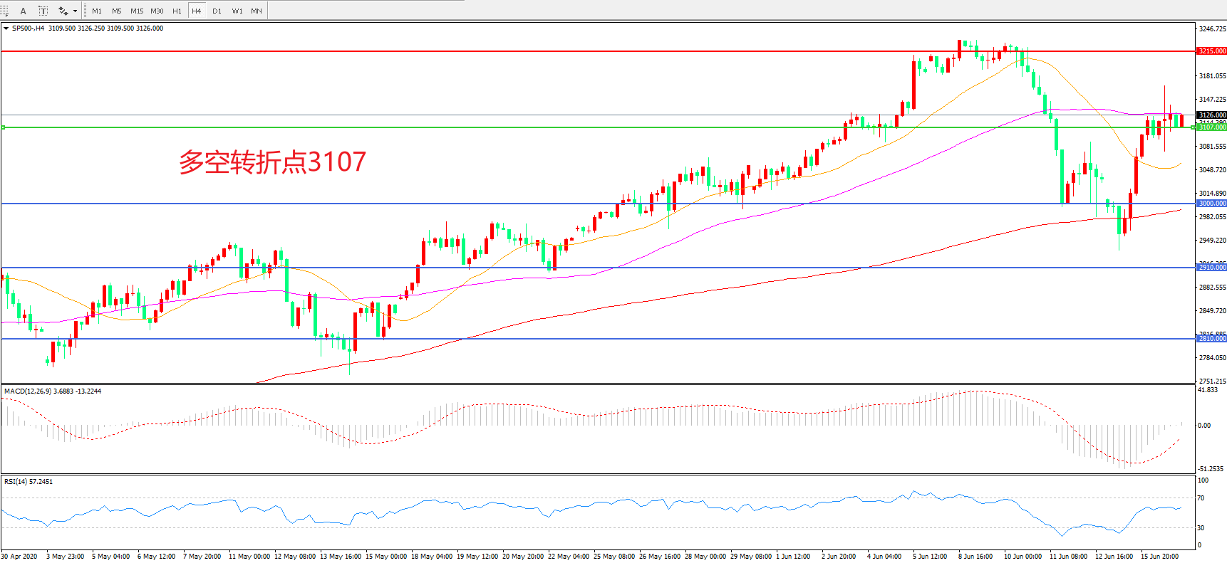 周二(6月16日),特朗普万亿基建方案及五月零售销售增幅创史上最大月涨幅为市场带来提振,但美联储主席鲍威尔称经济复苏时机和力度仍然存很大不确定性又为市场带来压力,标普500呈现宽幅震荡走势,收报3107.27点。