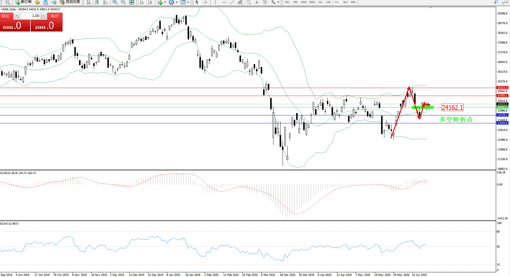 恒指HK50 ——日K线图显示:
