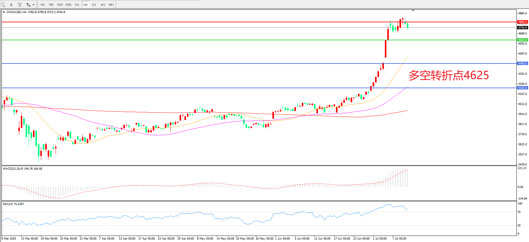 进入7月,A股涨势如虹,仅用6个工作日就直接攻破3400点大关,两市成交量出现明显放量,连续数日破万亿。与此同时,沪深300长阳连续拉升,在周五大幅调整2%的情况下依然周线收阳,报4744.9点。