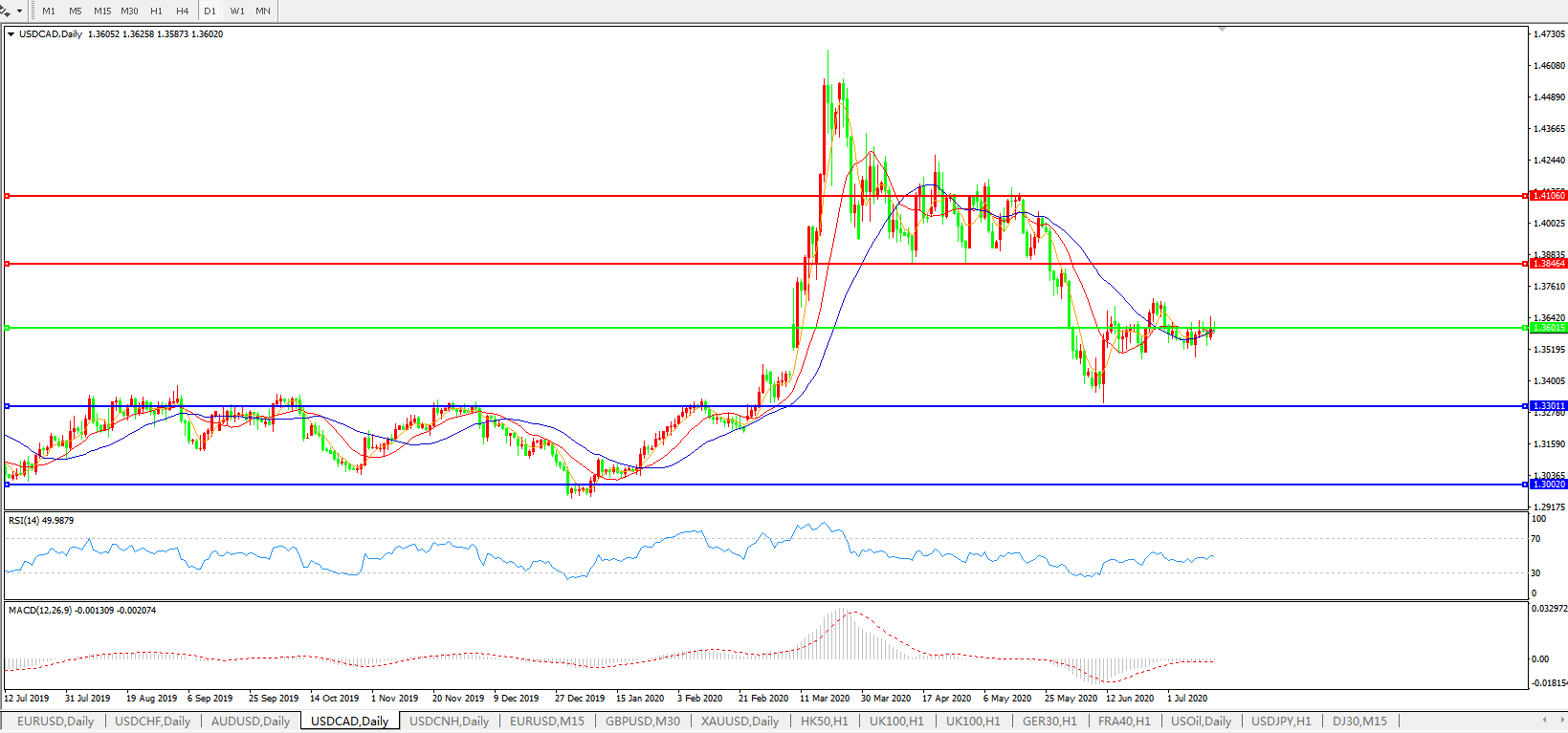 交易策略:在1.3600之下,看跌,目标价位为1.3300、1.3000