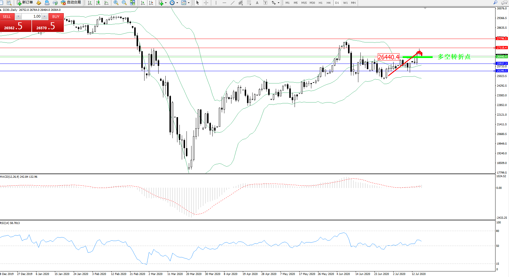 道琼斯指数7月16日(周四)收盘下跌135.50点,跌幅0.50%,报26734.64点。美股三大指数全部收跌,对冠状病毒感染人数上升的担忧引发普遍的避险操作,推动美国股市走低。冠状病毒感染再度激增迫使加州和其他州再次停摆,引发了对美国经济和劳动力市场将继续受到影响的担忧。科技股带动下三日来首次收跌,投资者撤出今年以来表现最好的板块,某些经济部门进展顺利,但现在的问题是已经看到第二波病例激增,而且一些州开始收紧政策,虽然预计不会是完全封锁,但无疑会让人怀疑复苏速度能有多快。美国商务部的报告显示,6月零售销售连续第二个月增长。但据美国劳工部周四发布的另一份报告,新冠疫情再度加重,正在削弱刚刚开始的复苏,仍有3,200万美国人在领取失业救济金。