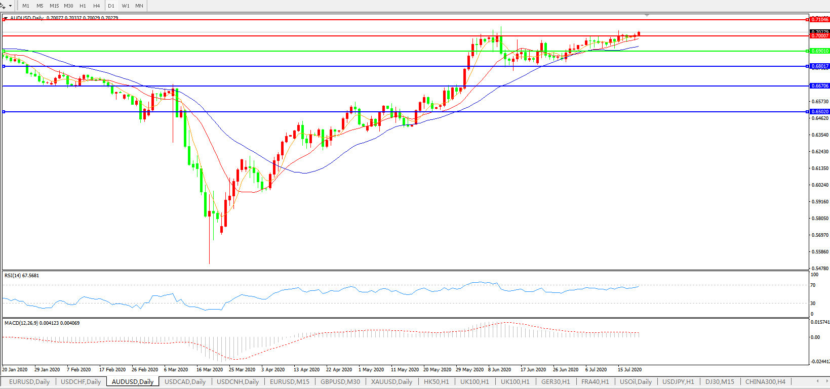 交易策略:0.6900上方看涨,目标0.7000、0.7100
