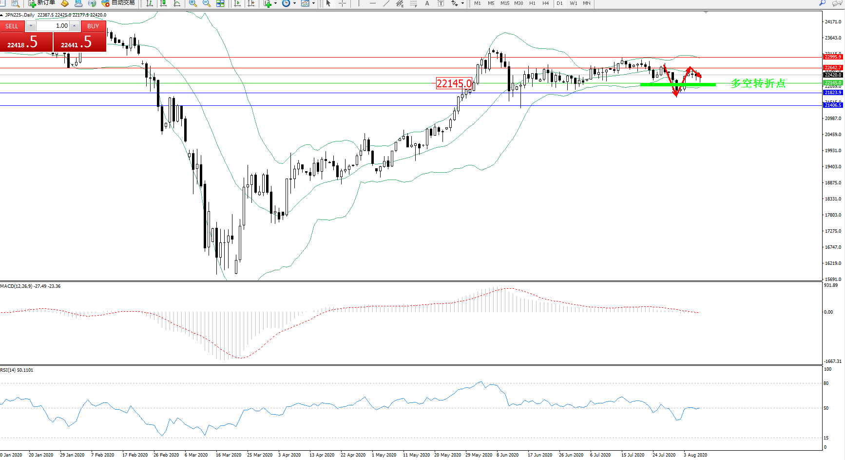 日经225指数8月7日(周五)收盘下跌102.15点,跌幅0.46%,报22316.00点。6月经通胀调整的实质薪资连续第四个月下降,在日本经济面临新冠疫情长期影响之际,这样的数据为消费者支出前景蒙上阴影;日本经济第二季或创战后最严重的滑坡,分析师预计环比年率为萎缩逾20%,因疫情危机和封锁措施导致企业和家庭活动停顿;衡量家庭购买力的实质薪资6月较上年同期下跌1.9%,5月数据下修至下滑2.3%,为2015年6月以来最大跌幅;6月加班工资较上年同期大幅下降24.6%,连续第10个月下降。5月数据被下修至下降26.3%;月度薪资数据显示,6月受薪者名义整体现金所得较上年同期下降1.7 。