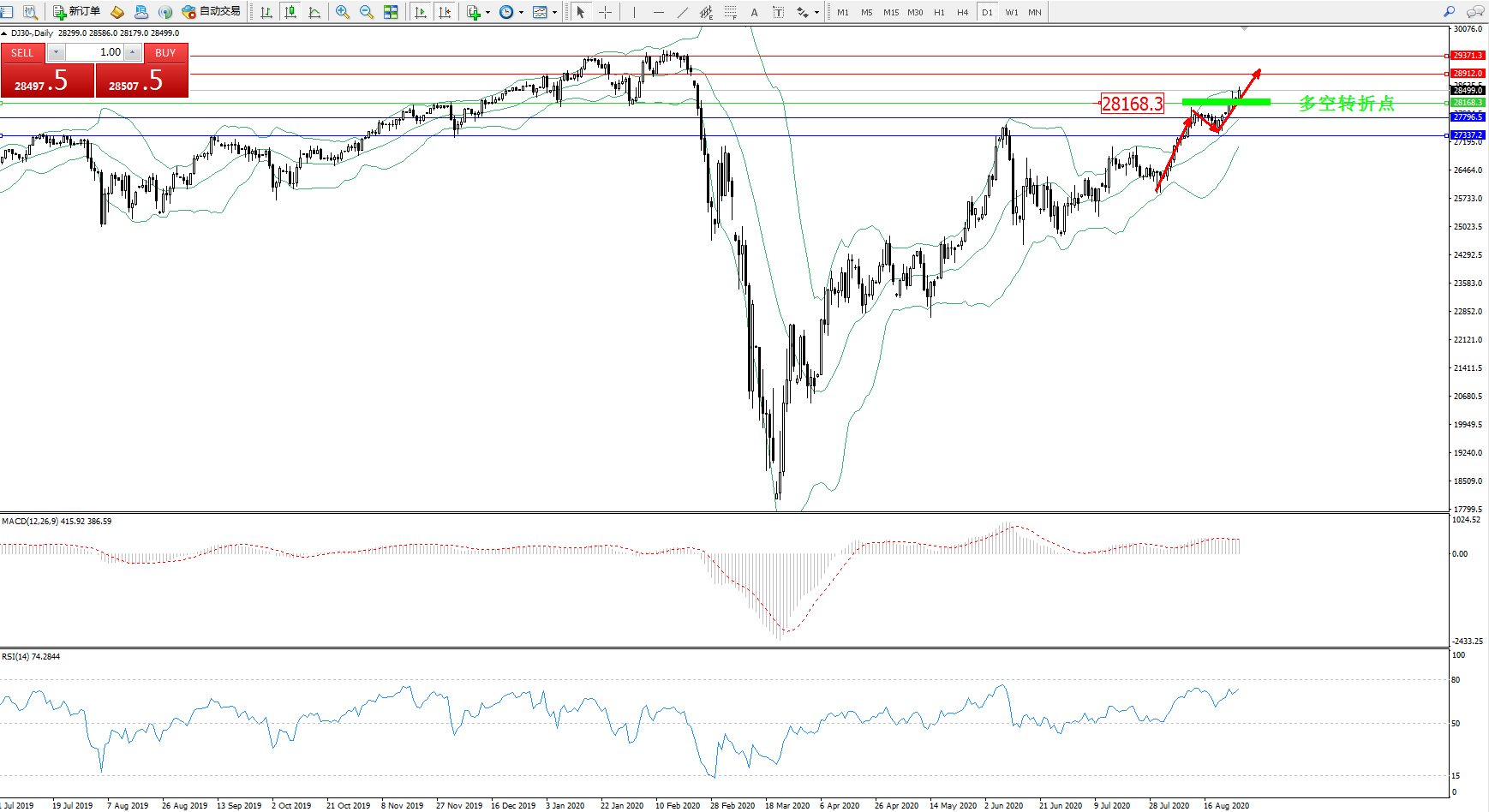 道琼斯指数8月27日(周四)收盘上涨160.40点,涨幅0.57%,报28492.27点。美股三大指数收盘涨跌不一,美国股市延续迭创新高的涨势,美联储主席鲍威尔重申将保持宽松政策。金融和地产股领涨,银行料得益于收益率上升。鲍威尔关于如果通胀显著高于平均2%的目标则美联储将采取行动的说法可能使投资者受到了惊吓。此前美联储主席鲍威尔如市场普遍预期的那样表示,美联储将推出一项积极的新策略,以提振美国就业和通胀。美债收益率上涨,此前美联储主席杰罗姆·鲍威尔传达了鸽派论调,并表示将以更放松的方法对待通胀。在经济数据方面,美国上周初请失业金人数一如预期徘徊在100万人左右,暗示随着新冠疫情持续,以及政府的财政援助枯竭,就业市场复苏正陷入停滞。