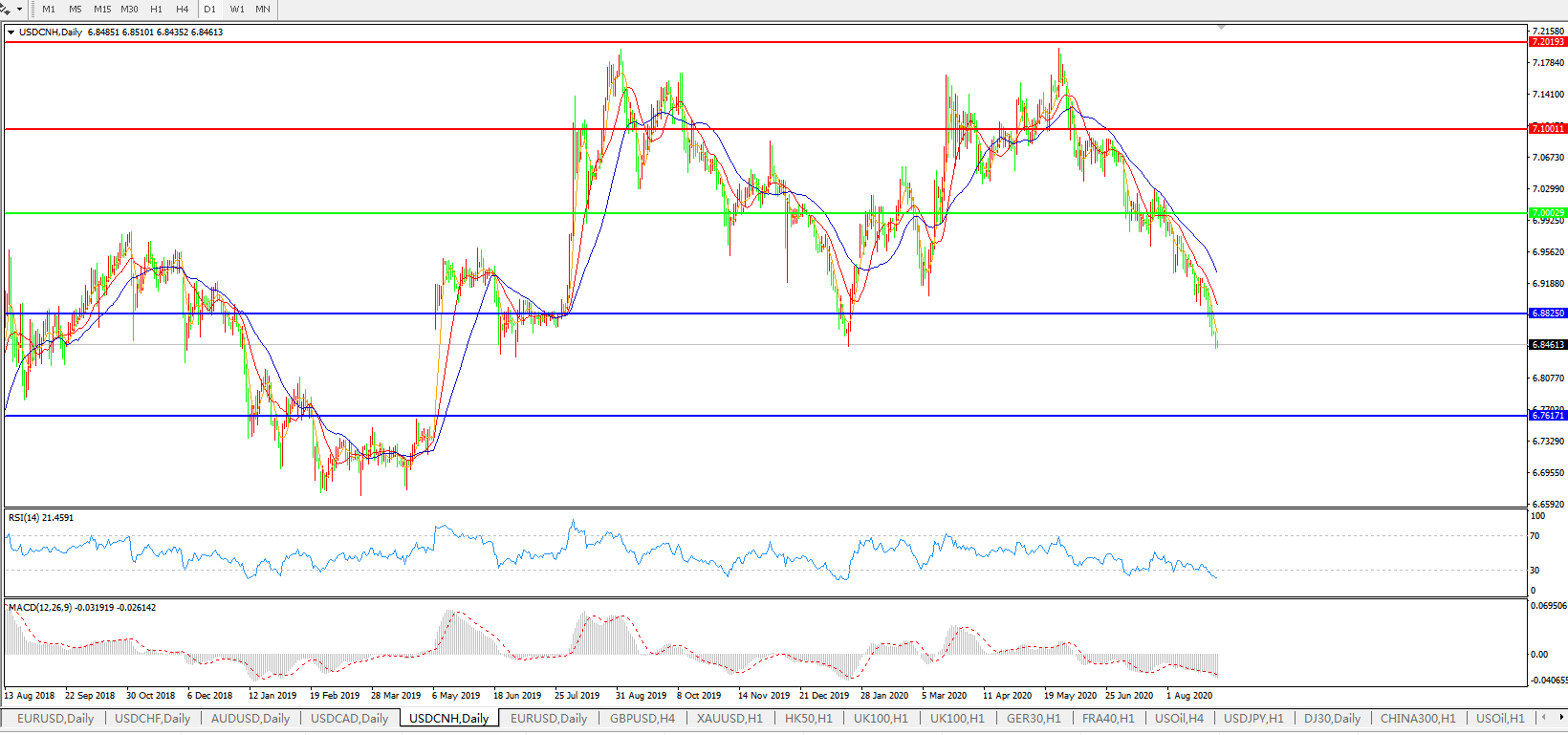 美元兑人民币USDCNH 日线图: