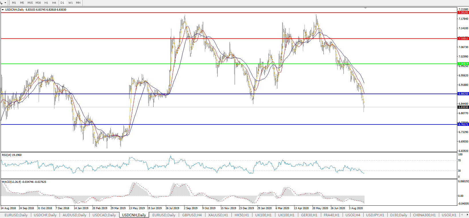美元兑人民币USDCNH 日线图: