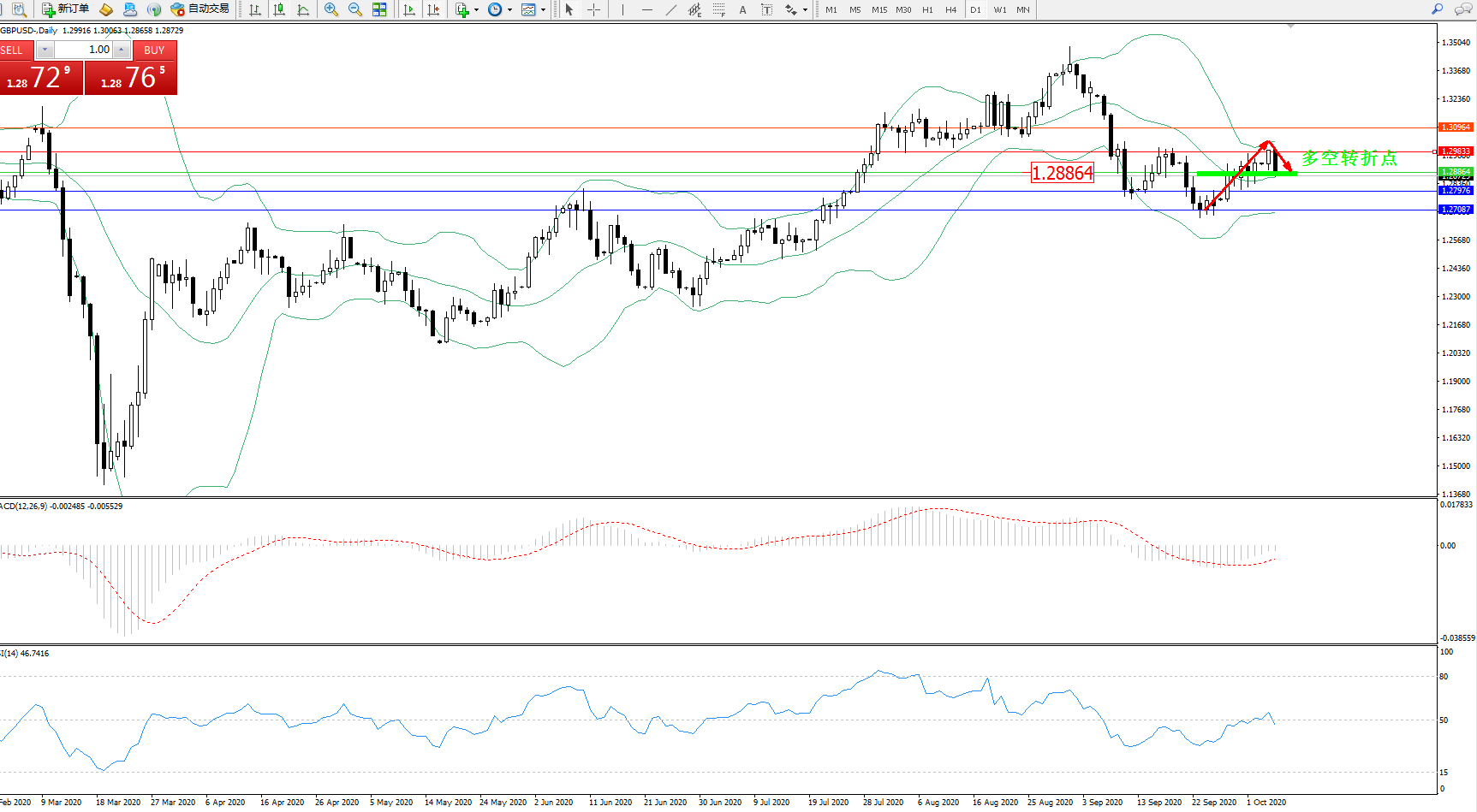 交易策略:1.28864下方看跌,目标1.30964、1.31812