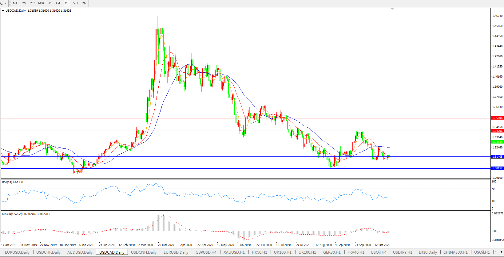 美元兑加元USDCAD 日线图: